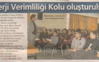 Elektrik Müh. Odası’nın, ilkokullarda “Enerji Verimliliği ile ilgili bilgilendirme” çalışması, Milliyet Ege Gazetesinde Haber olarak yayınlandı. Haber’de Avrasya Yapı Denetim A.Ş. Elektrik Müh. Mehmet HEPZARİF ve öğrenciler görüntülendi.